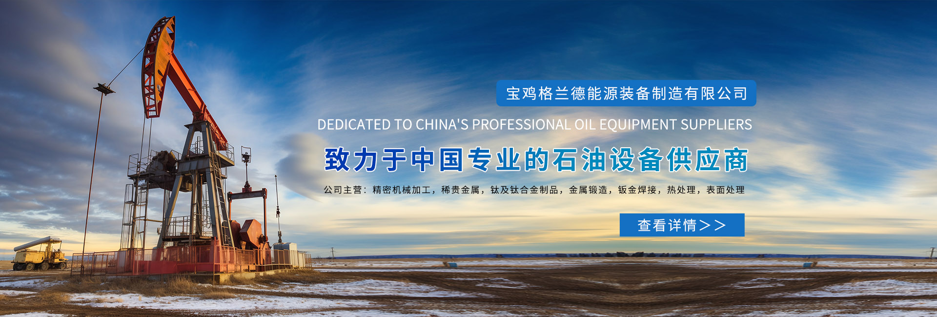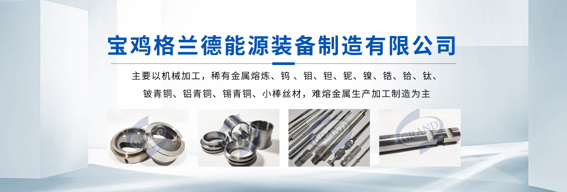寶雞格蘭德能源裝備制造有限公司坐落于中國鈦都——寶雞,公司依托寶雞稀有金屬倉儲,主要以機械加工,稀有金屬熔煉,鎢 ,鉬,···
